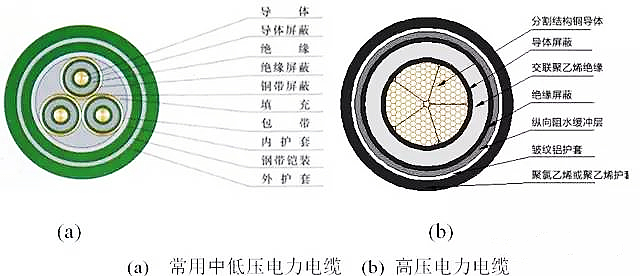 ② 一般情況3kV及以下低壓電纜沒(méi)有絕緣屏蔽層,6kV及以上的中高壓電纜都必須有絕緣屏蔽層。
