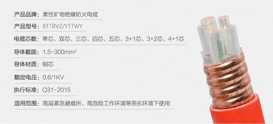 BBTRZ/TBTRZY:銅芯礦物質(zhì)絕緣柔性礦物絕緣電纜,俗稱防火電纜。