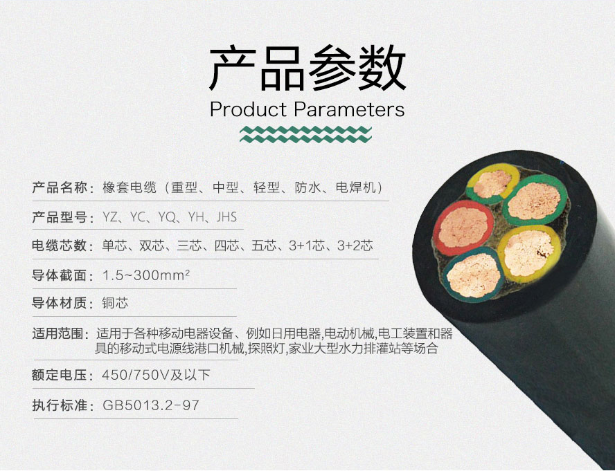 三、通用橡套軟電纜常用規(guī)格參數(shù)